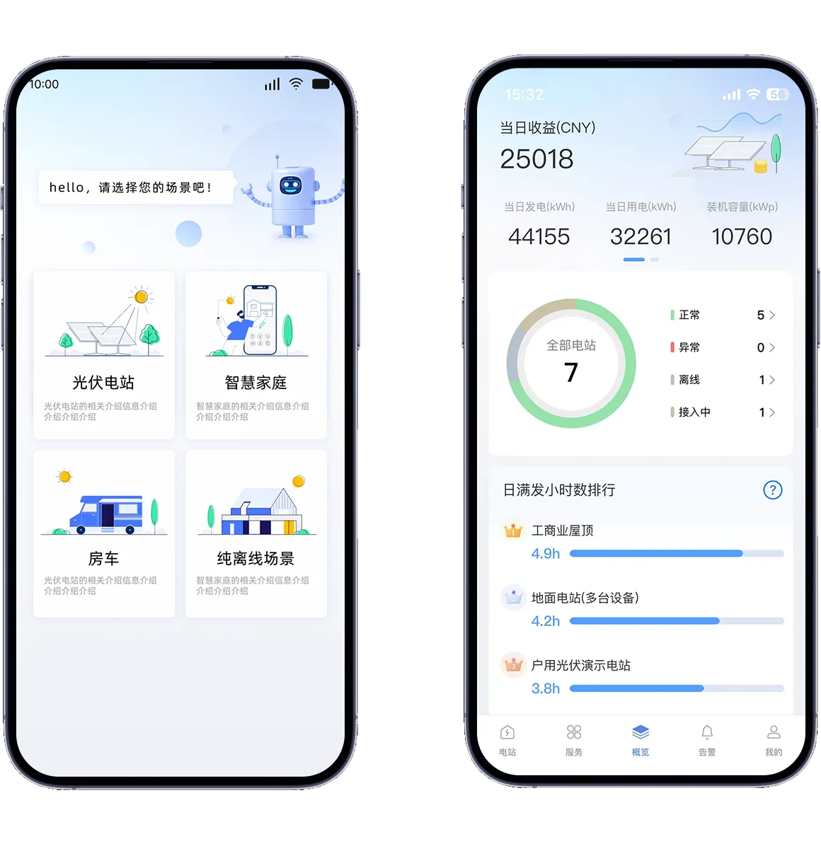 用户可以直观地查看光伏电站的运行状态,便于他们进行系统管理和数据查看。整体设计简洁明了,操作方便。