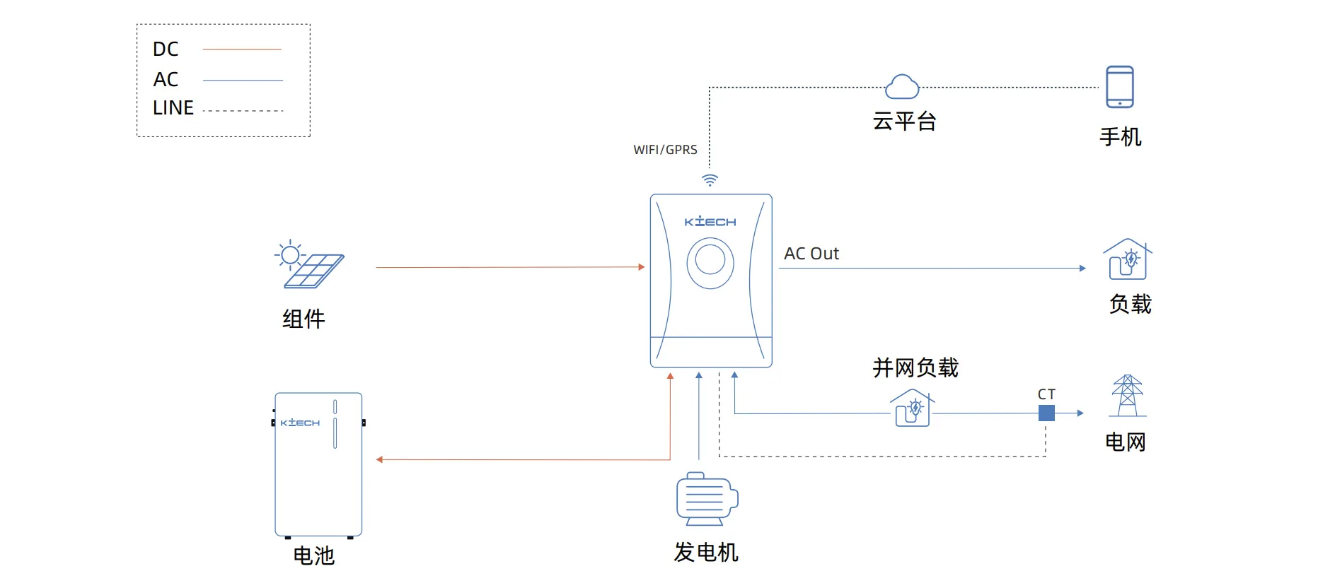 本方案采用 “光伏+储能电池+发电机” 三合一混合供电系统,为家庭提供高可靠性、低成本、离网模式的电力保障。系统优先使用太阳能供电,储能电池作为缓冲和备用电源,柴油/燃气发电机作为应急后备,确保极端天气或长时间阴雨情况下依然电力稳定。